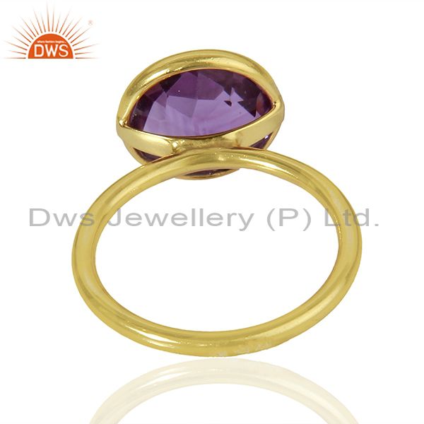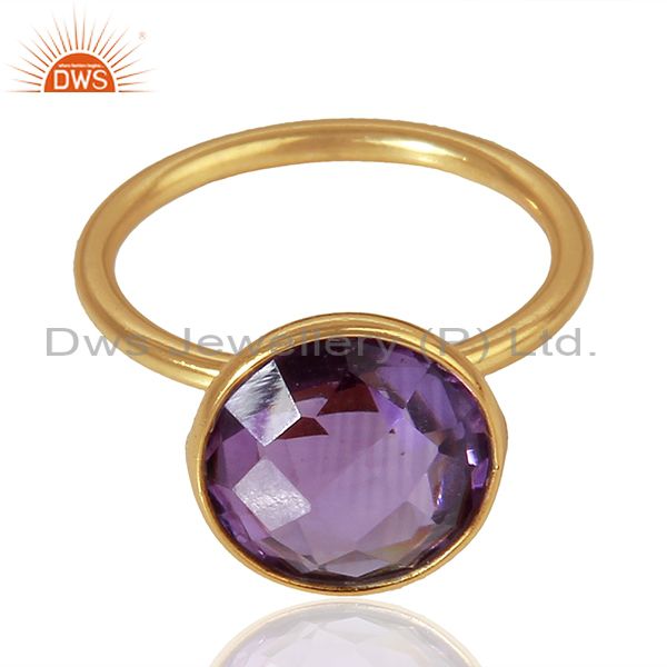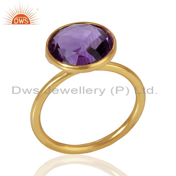 14K Yellow Gold Plated 925 Sterling Silver Round Cut Amethyst Stacking Ring