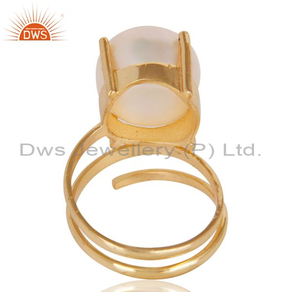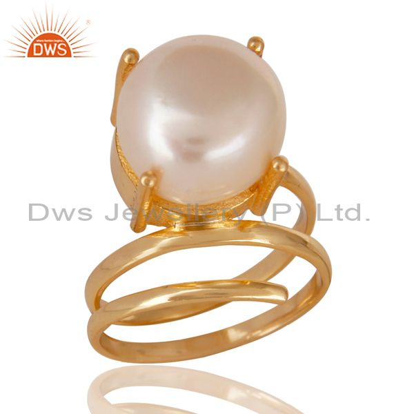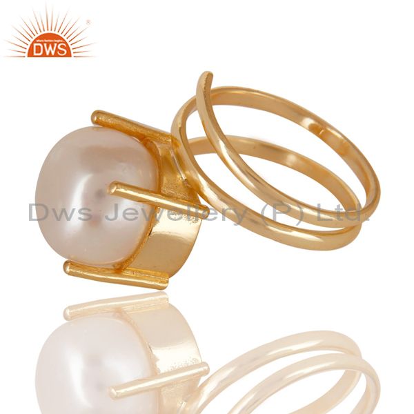 14K Yellow Gold Plated Beautiful Handmade Design Pearl Stackable Brass Ring