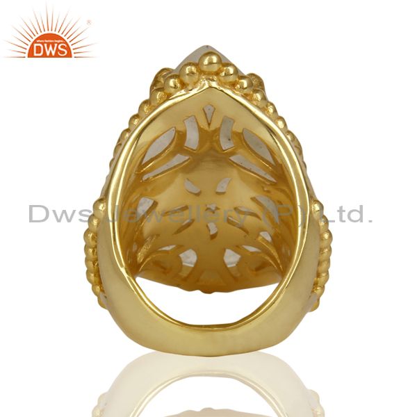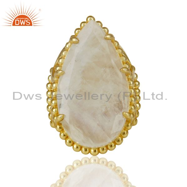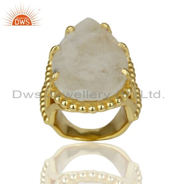 14K Yellow Gold Plated Handmade Rainbow Moonstone Gemstone Statement Ring