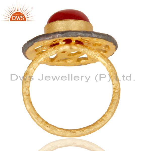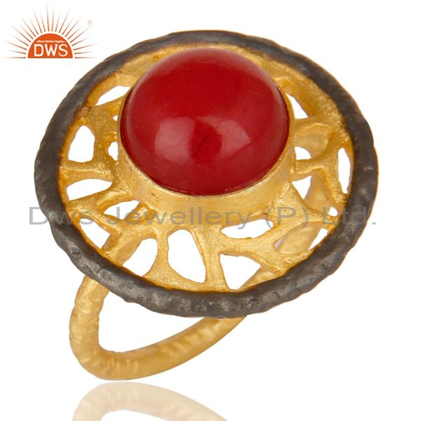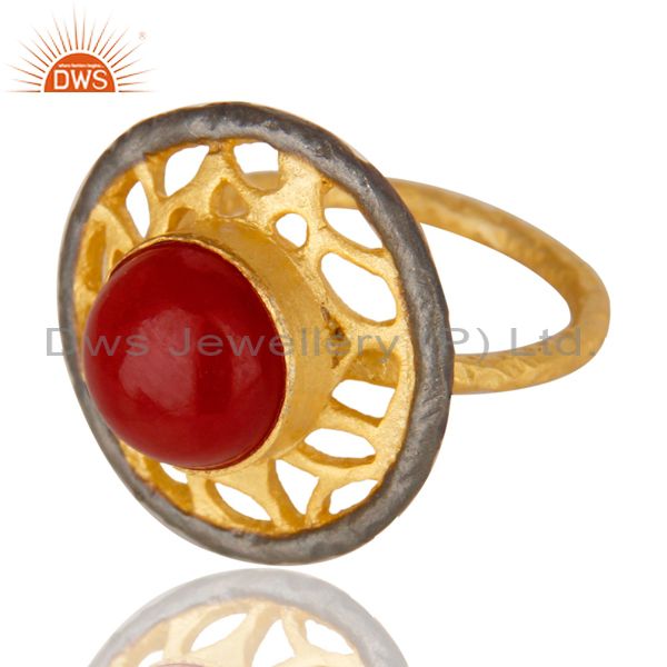14K Yellow Gold Plated Handmade Wide Natural Red Aventurine Cocktail Brass Ring