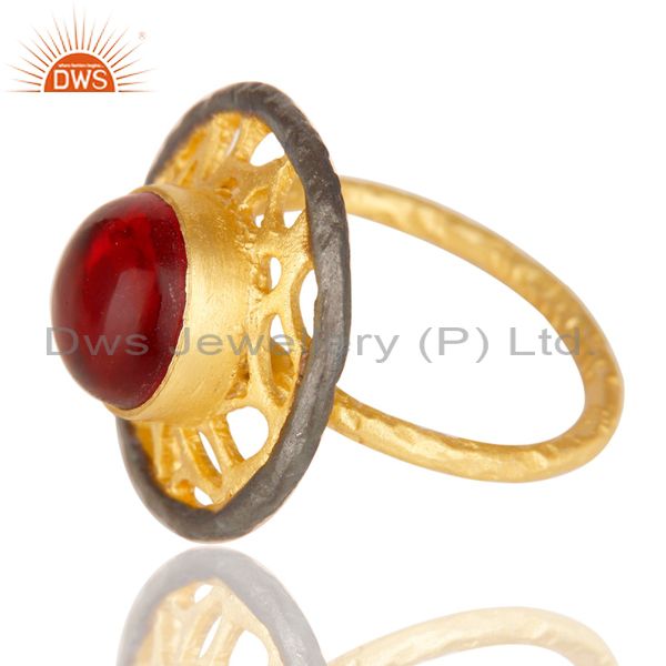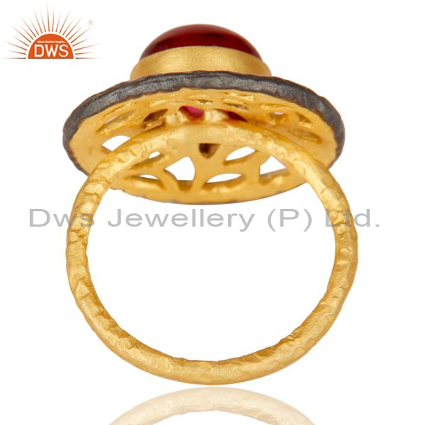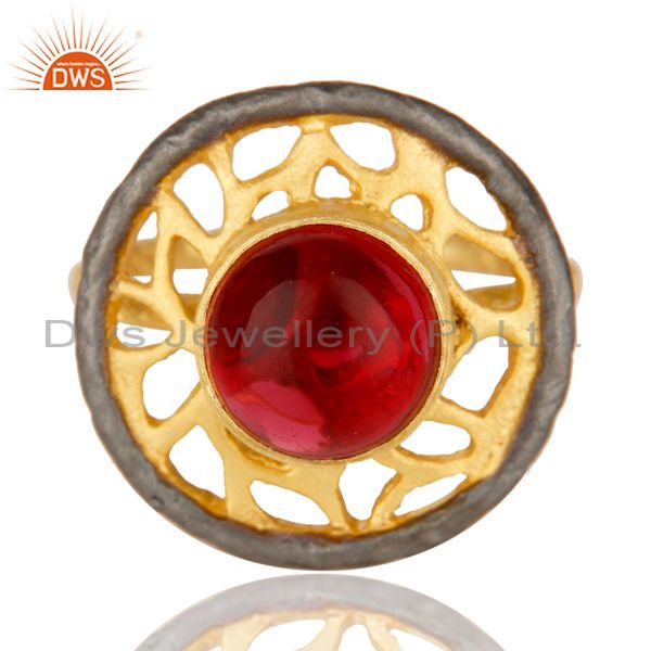 14K Yellow Gold Plated Handmade Wide Round Glass Pink Cocktail Brass Ring
