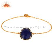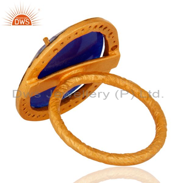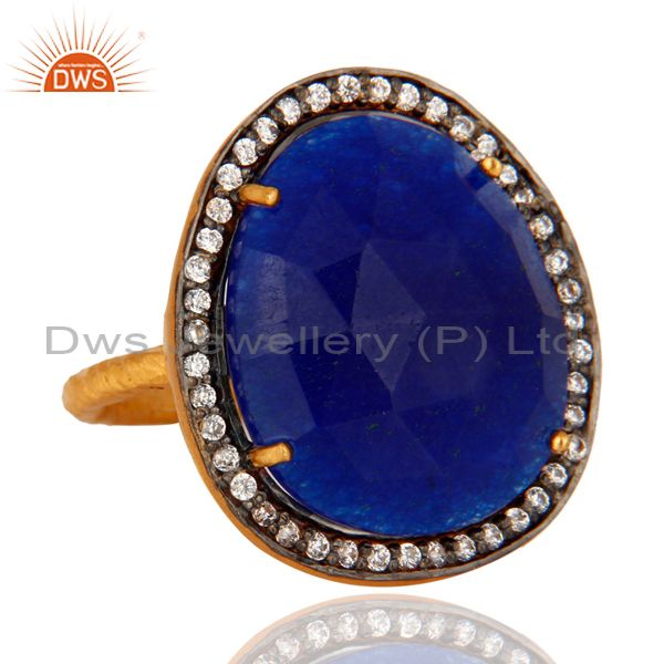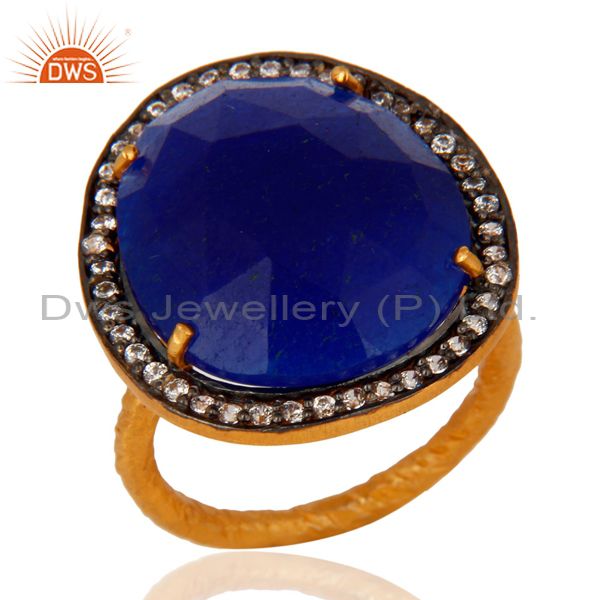 14K Yellow Gold Plated over Brass Blue Aventurine Gemstone Ring With CZ Gemstone