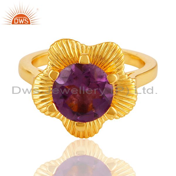 14K Yellow Gold Plated Sterling Silver Amethyst Gemstone Prong Set Cocktail Ring