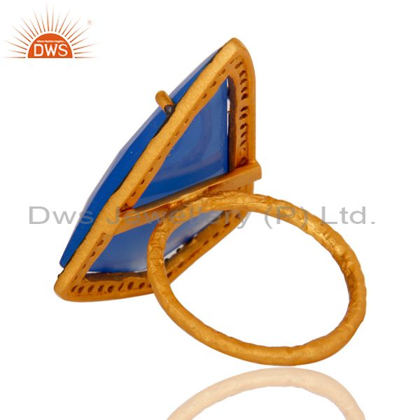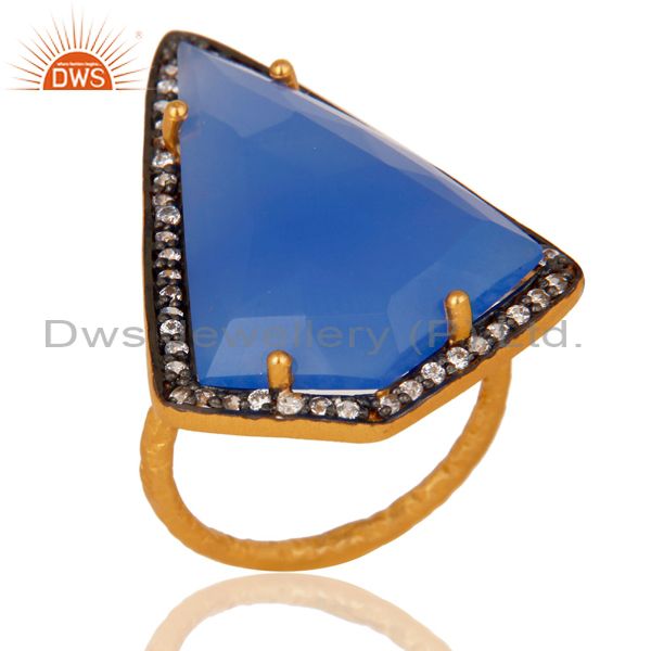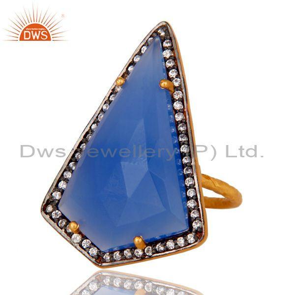 14K Yellow Gold Plated Sterling Silver Blue Chalcedony Solitaire Ring With CZ