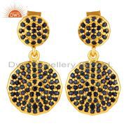 14K Yellow Gold Plated Sterling Silver Blue Sapphire Designer Stacking Ring