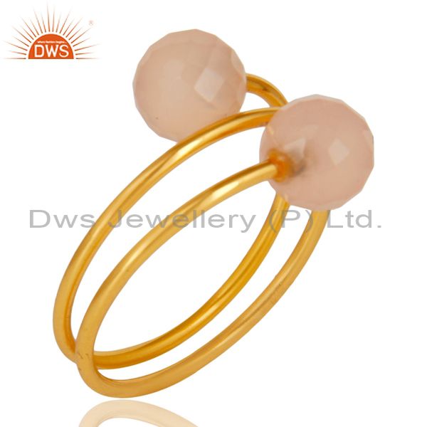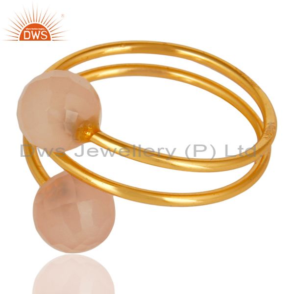 14K Yellow Gold Plated Sterling Silver Dyed Chalcedony Adjustable Ring