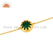 14K Yellow Gold Plated Sterling Silver Green Aventurine Gemstone Stackable Ring