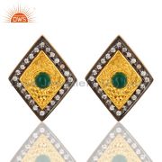 14K Yellow Gold Plated Sterling Silver Green Onyx And CZ Hammered Statement Ring
