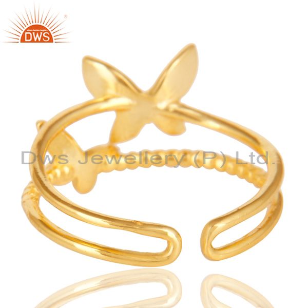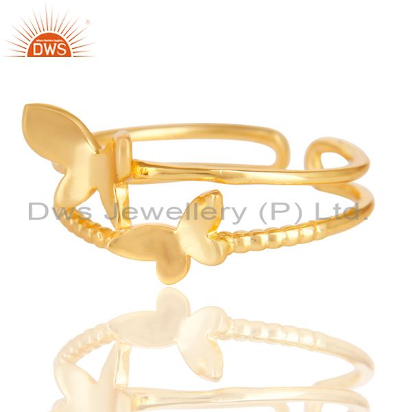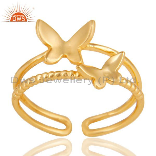 14K Yellow Gold Plated Sterling Silver Handmade Butterfly Design Stackable Ring