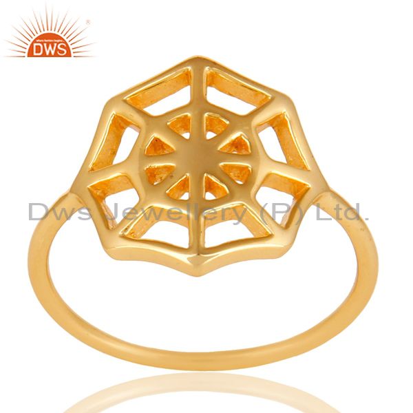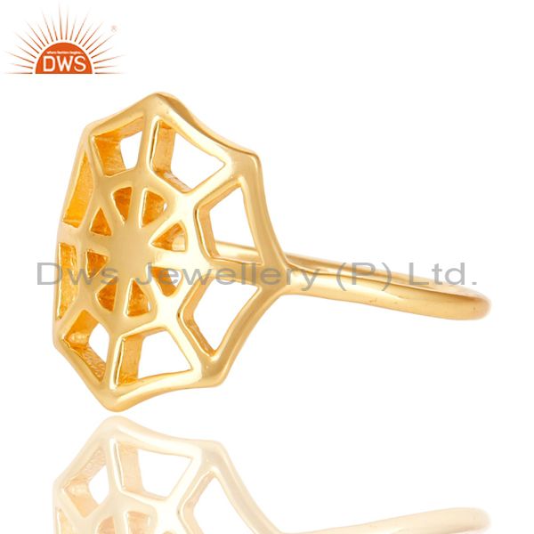 14K Yellow Gold Plated Sterling Silver Handmade Spider Web Design Cocktail Ring