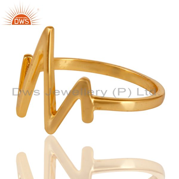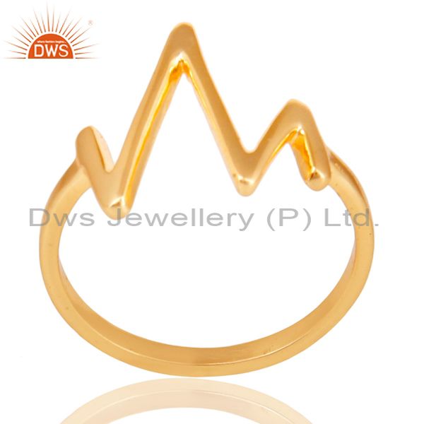 14K Yellow Gold Plated Sterling Silver Handmade Zig Zag Design Stackable Ring