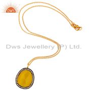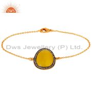 18-Carat Yellow Gold Plated Yellow Moonstone Cocktail Ring With White Zircon