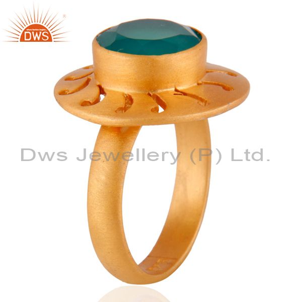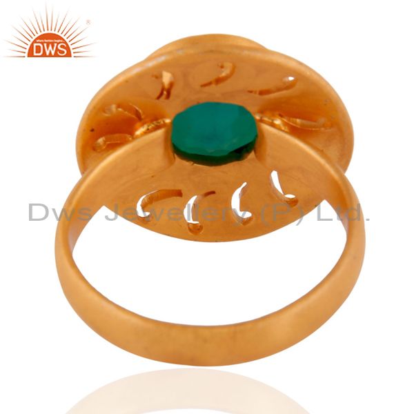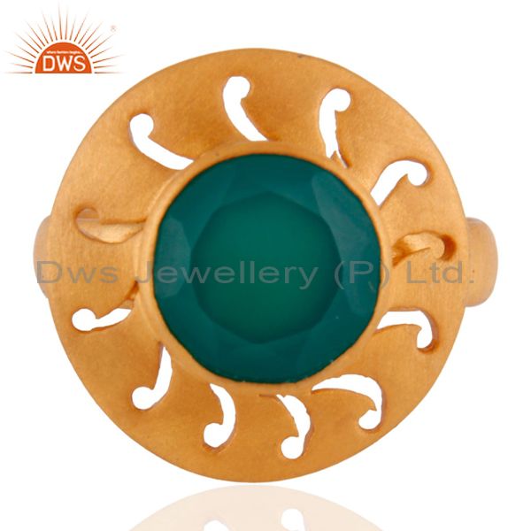 18-Karat Yellow Gold Plated On Sterling Silver Gemstone Green Onyx Ring