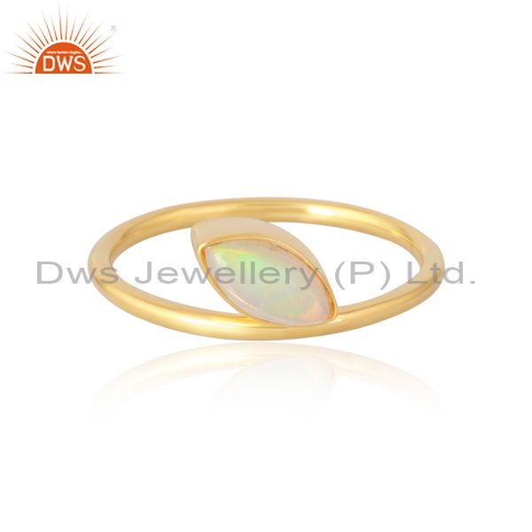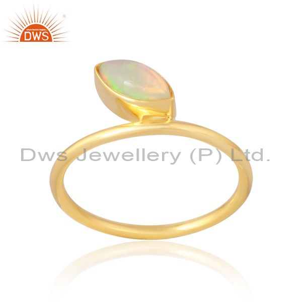 18K Gold 925 Silver Cushion Marquise Ethiopian Opal Ring