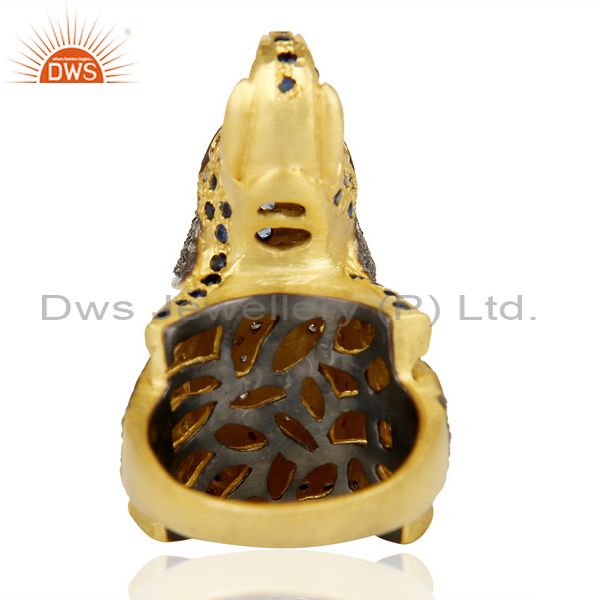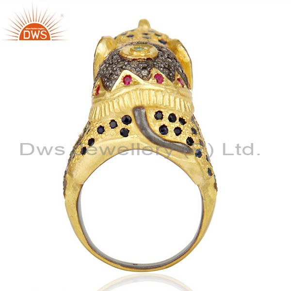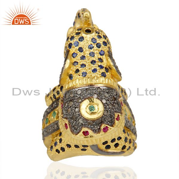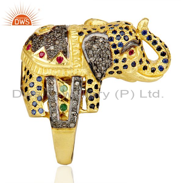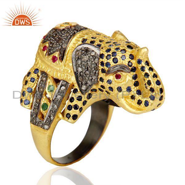18K Gold Over Silver Emerald, Ruby And Sapphire Pave Diamond Elephant Ring