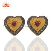 18K Gold Over Sterling Silver Ruby Pave Diamond Hammered Band Heart Ring