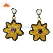 18K Gold Over Sterling Silver Textured Flower Cocktail Ring With Tourmaline