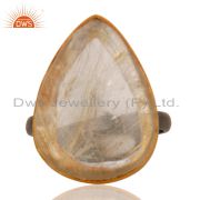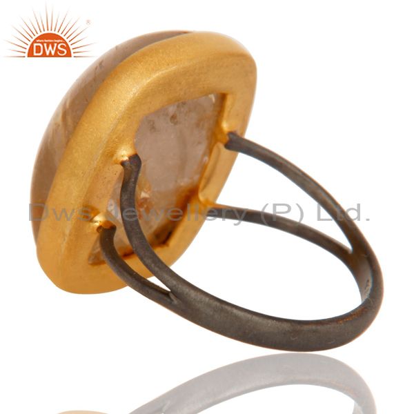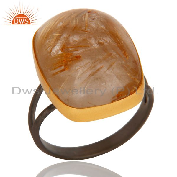 18K Gold Plated & Black Oxidized 925 Sterling Silver Routile Golden Unique Ring