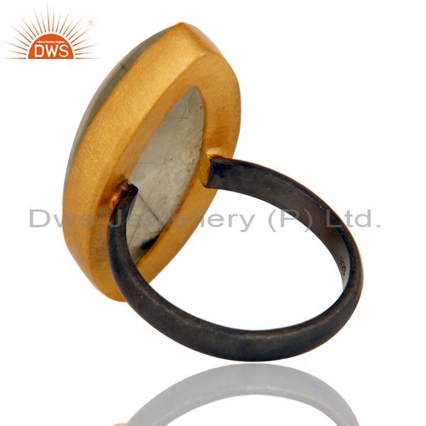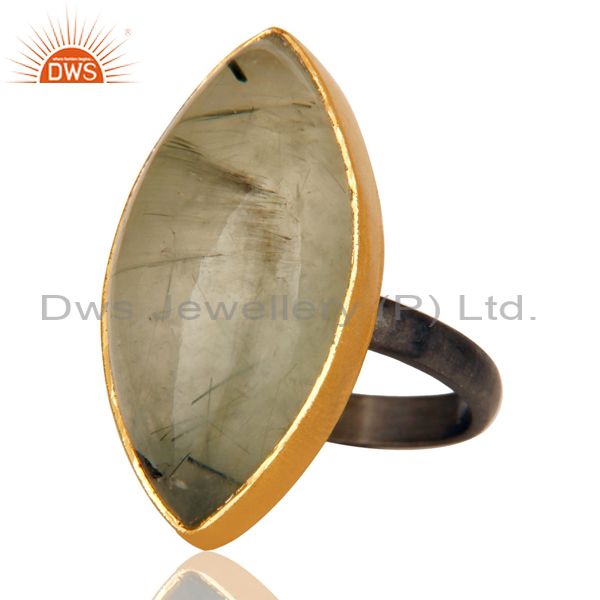 18K Gold Plated & Black Oxidized Sterling Silver Natural Prehnite Unique Ring