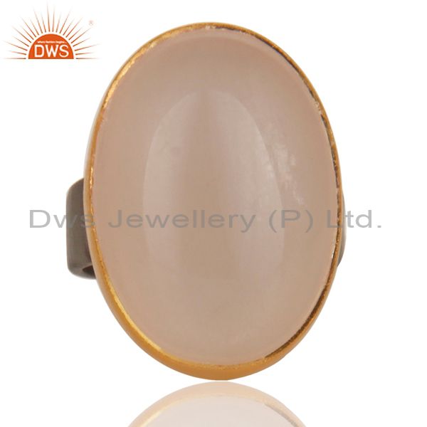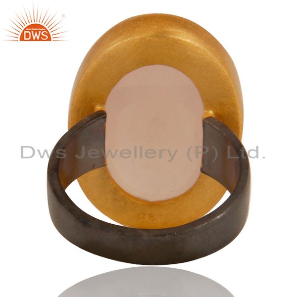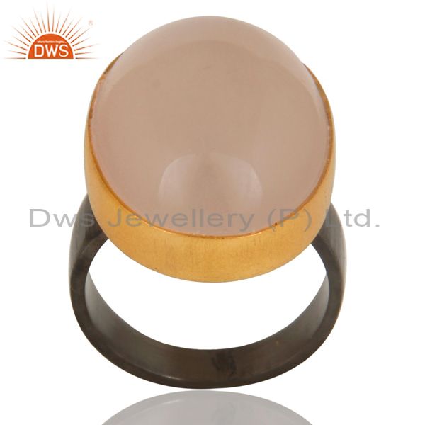 18K Gold Plated & Black Oxidized Sterling Silver Rose Quartz Fine Artisan Ring