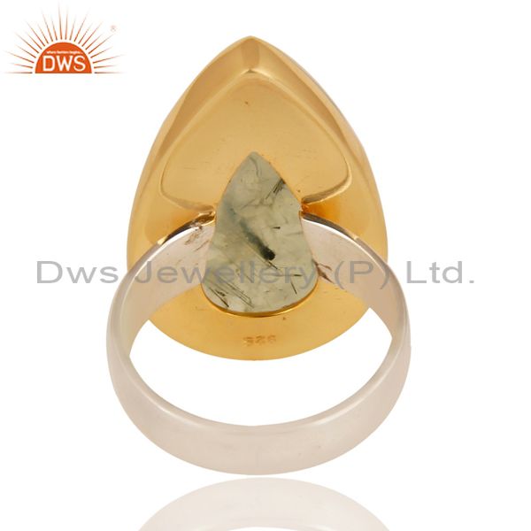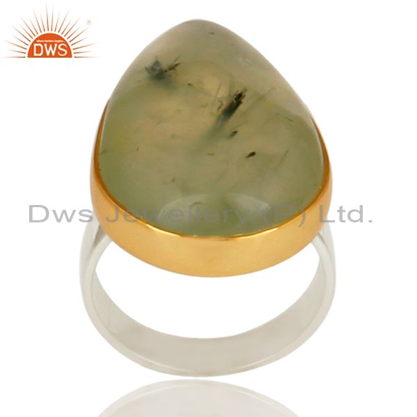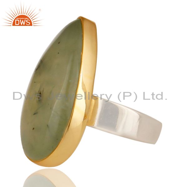 18K Gold Plated & Solid Sterling Silver Handmade Design Natural Prehnite Ring