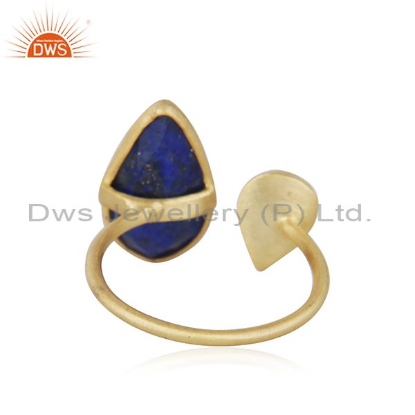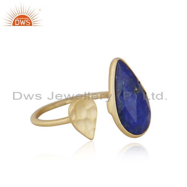 18k Gold Plated 925 Silver Natural Lapis Lazuli Gemstone Ring Jewelry