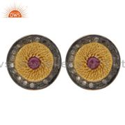 18K Gold Plated 925 Sterling Silver Ruby Gemstone Pave Stack Ring With Diamonds