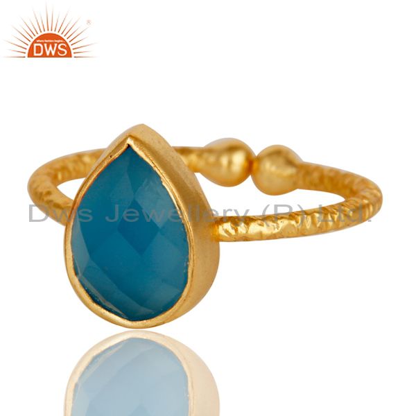 18K Gold Plated 925 Sterling Silver Stackable Ring With Chalcedony