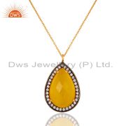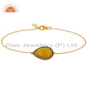 18K Gold Plated 925 Sterling Silver Yellow Moonstone Prong Set Designer Ring