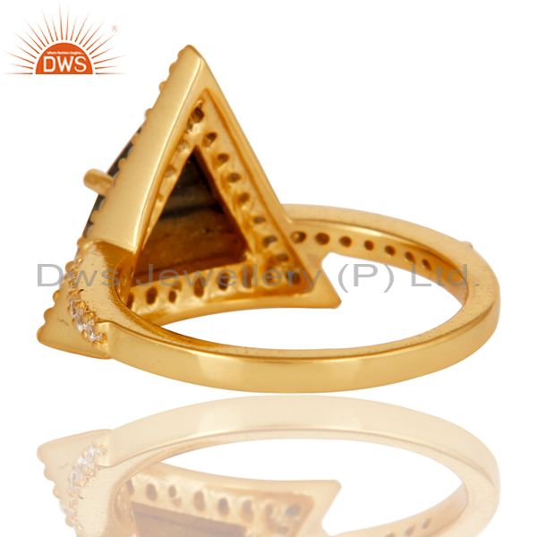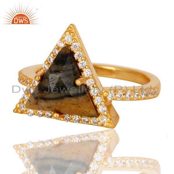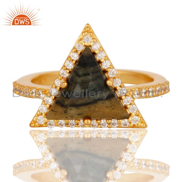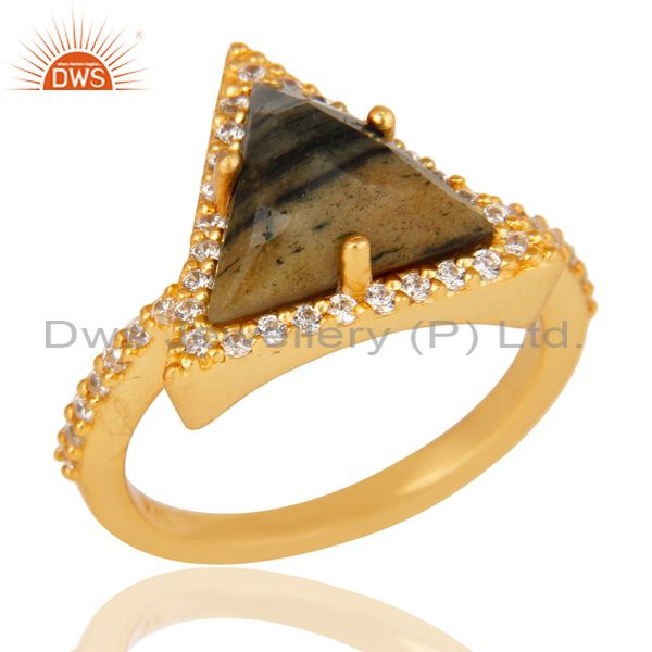 18K Gold Plated 925 Sterling Silver Zebra Jasper & White Zirconia Statement Ring
