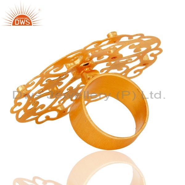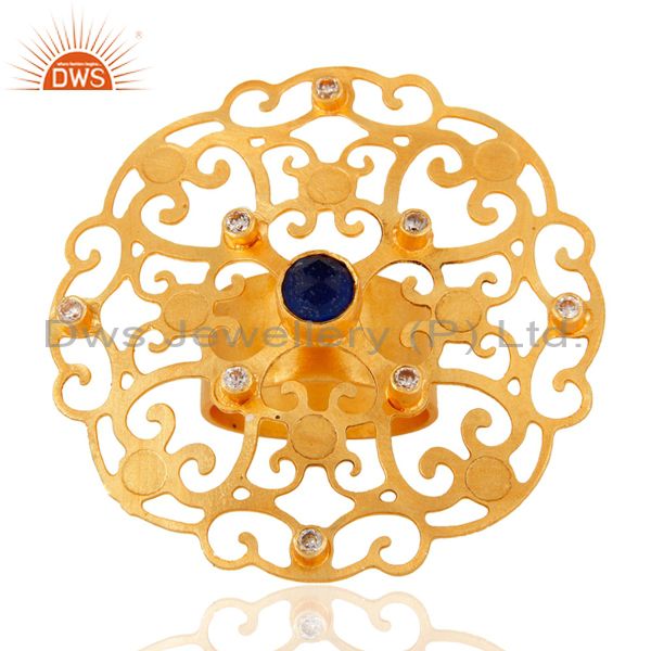 18K Gold Plated Blue Aventurine And White Zircon Large Designer Cocktail Ring