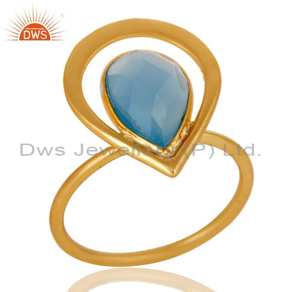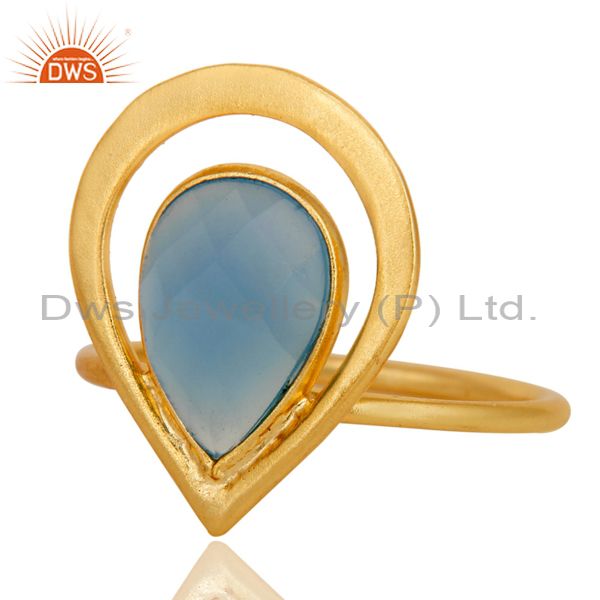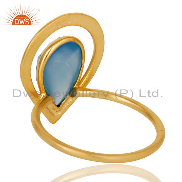 18K Gold Plated Blue Chalcedony Sterling Silver Art Deco Style Designer Ring