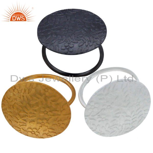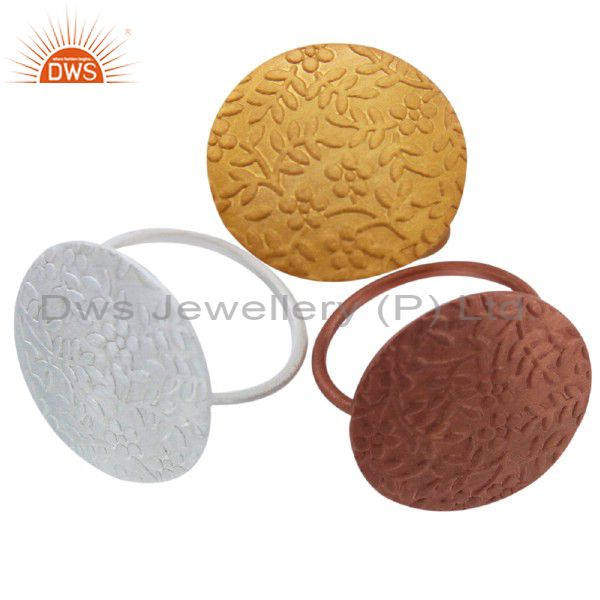 18K Gold Plated Brass Leaf Design Engraved Cocktail Ring