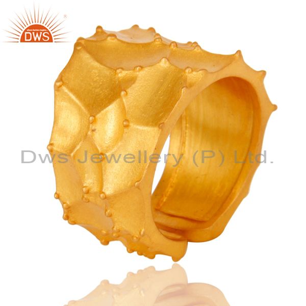 18K Gold Plated Brass Ring Handmade Textured Open Adjustable Ring Fashion Ring
