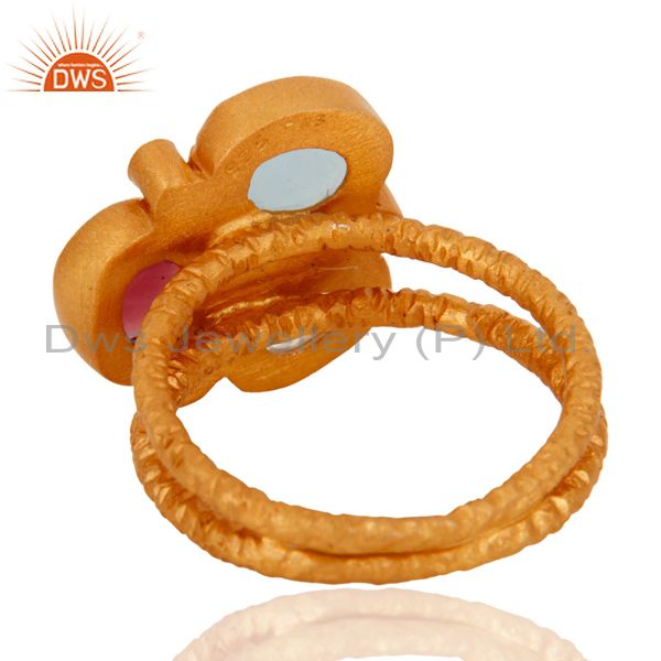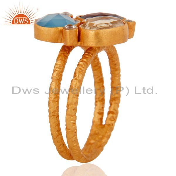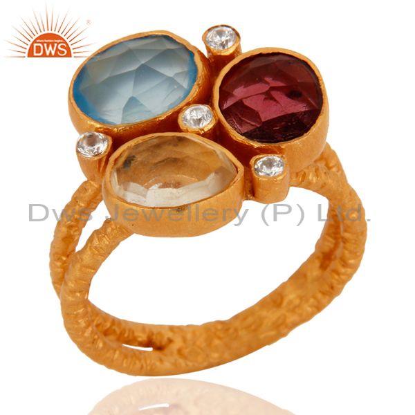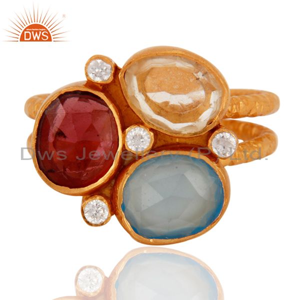 18K Gold Plated Garnet & Citrine Rough Gemstone 925 Sterling Silver Ring