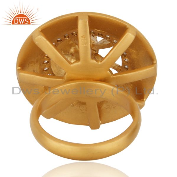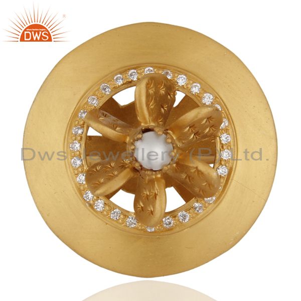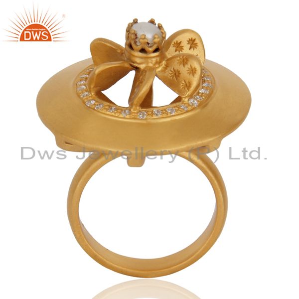 18K Gold Plated High Polished 925 Sterling Silver Fan Design Pearl Cocktail Ring