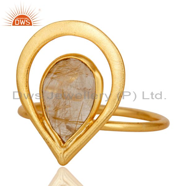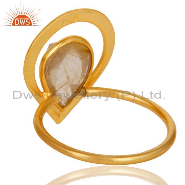 18K Gold Plated Rutilated Quartz Sterling Silver Art Deco Style Designer Ring