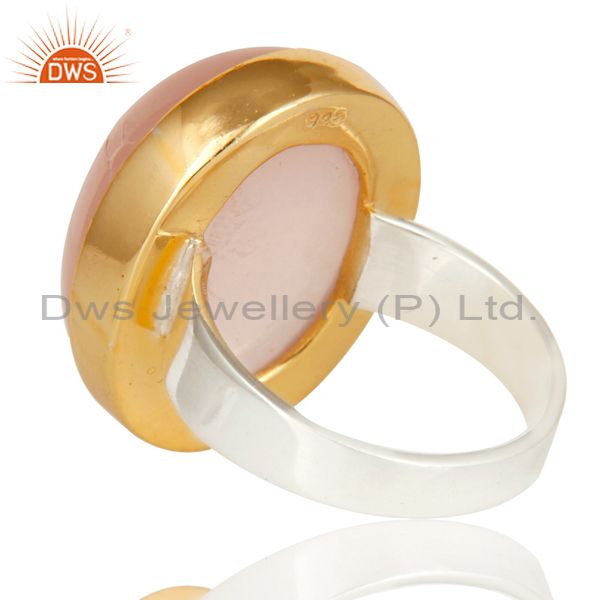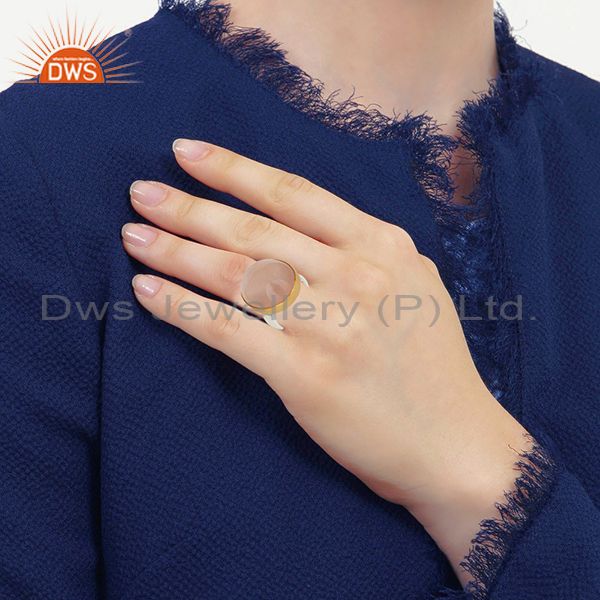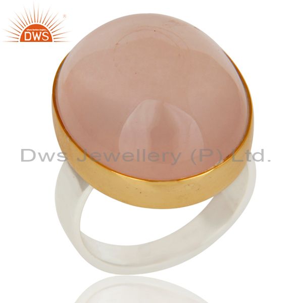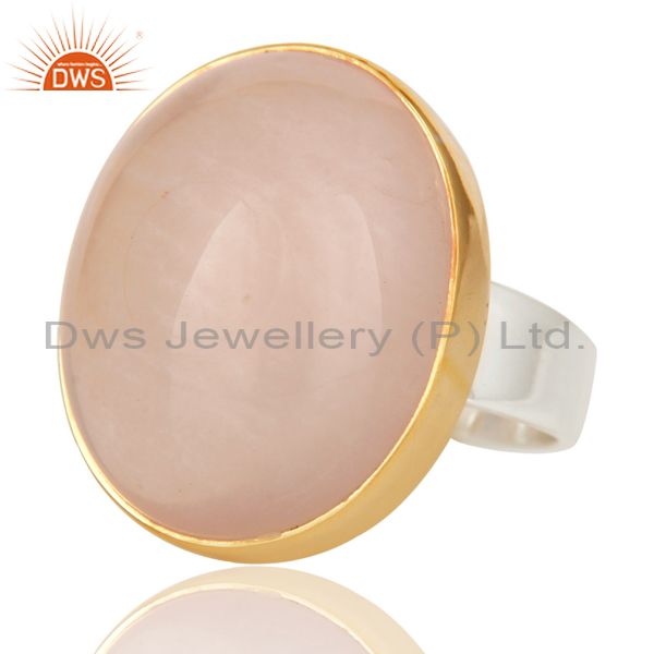 18K Gold Plated Solid 925 Sterling Silver Natural Rose Quartz Gemstone Ring