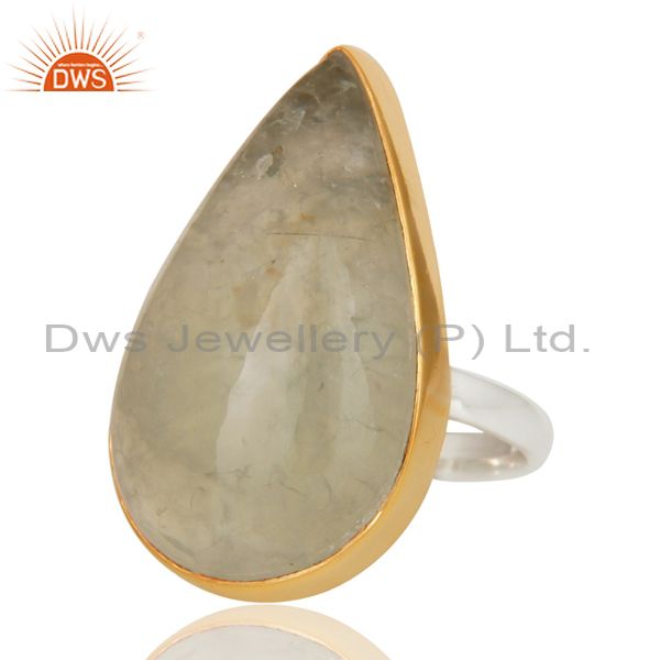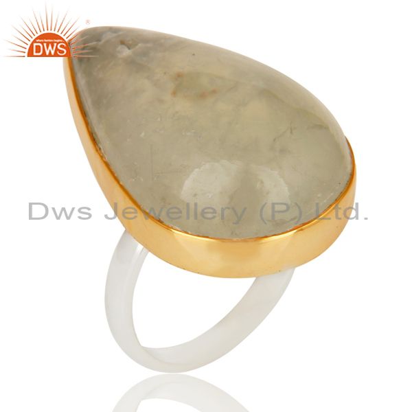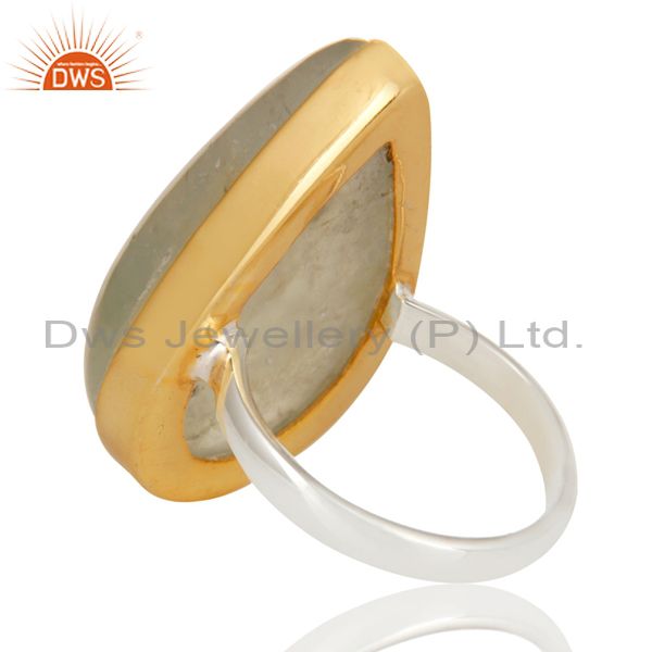 18K Gold Plated Solid 925 Sterling Silver Pear Shape Prehnite Gemstone Ring