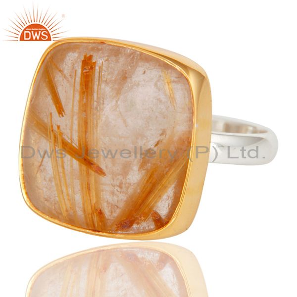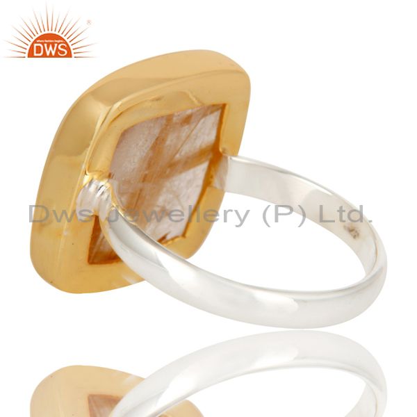 18K Gold Plated Solid 925 Sterling Silver Routile Golden Statement Ring