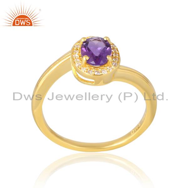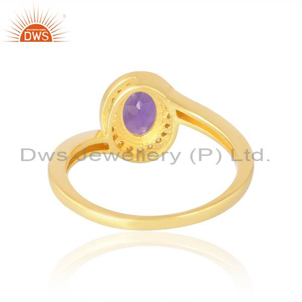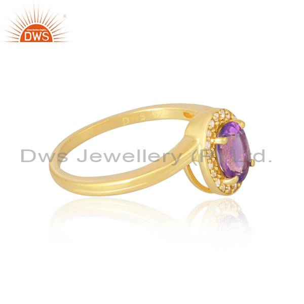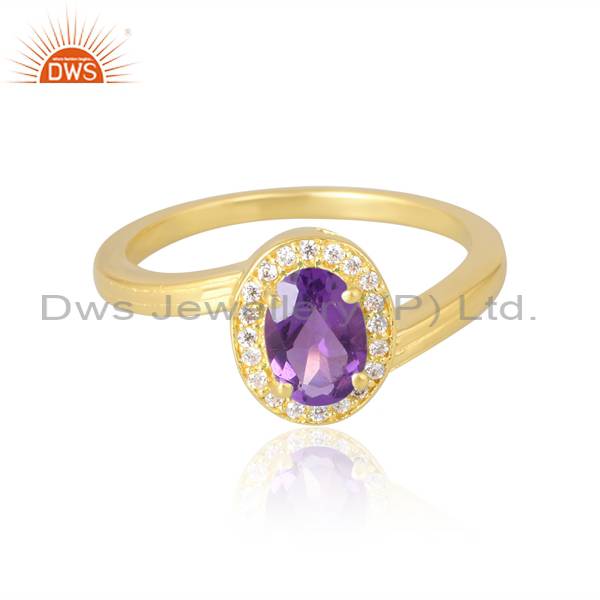 18K Gold Plated Sterling Silver Amethyst Oval Cz Round Ring