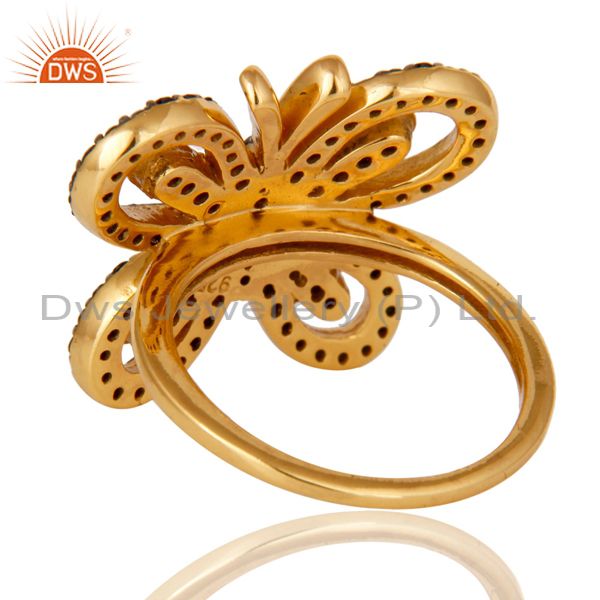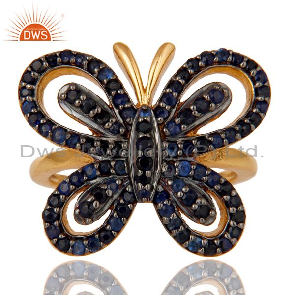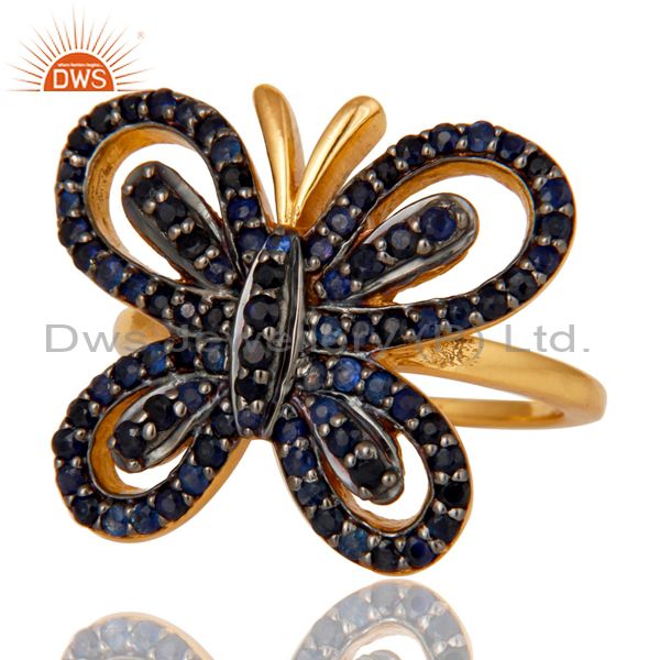 18K Gold Plated Sterling Silver Blue Sapphire Butterfly Designer Ring