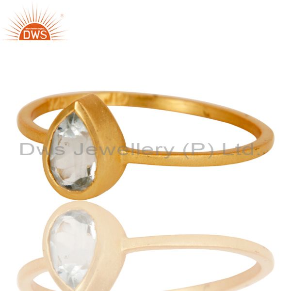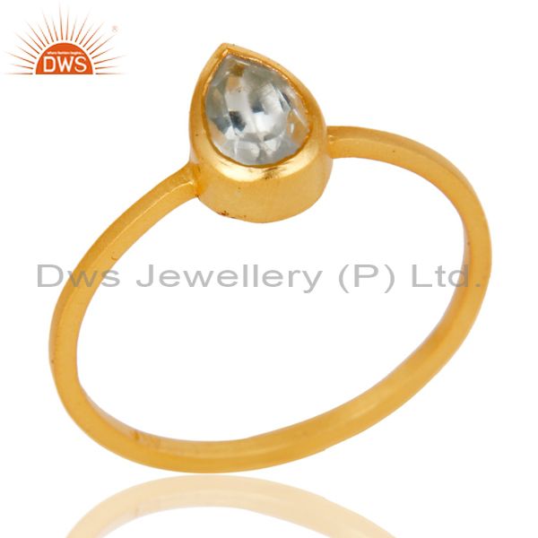 18k Gold Plated Sterling Silver Blue Topaz Gemstone Stacking Ring