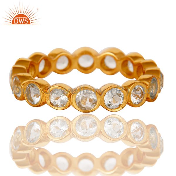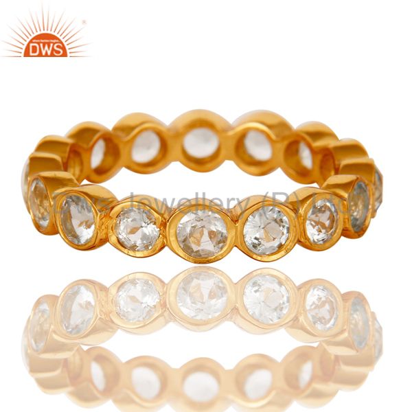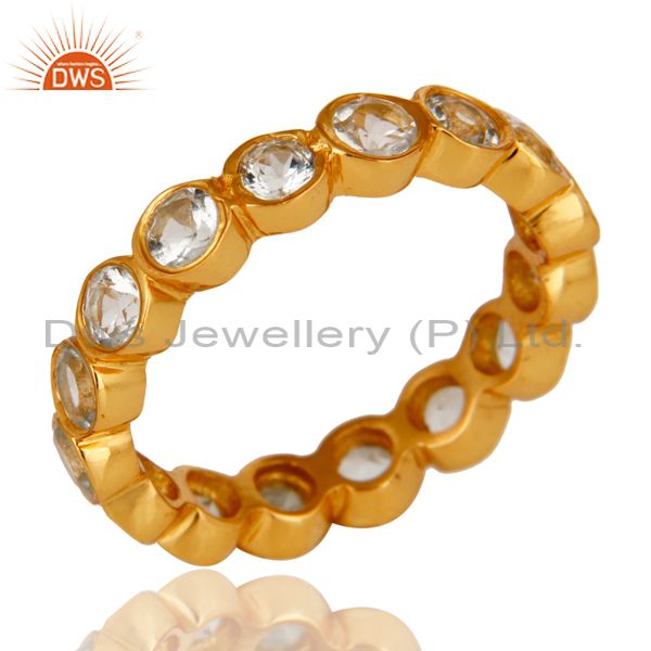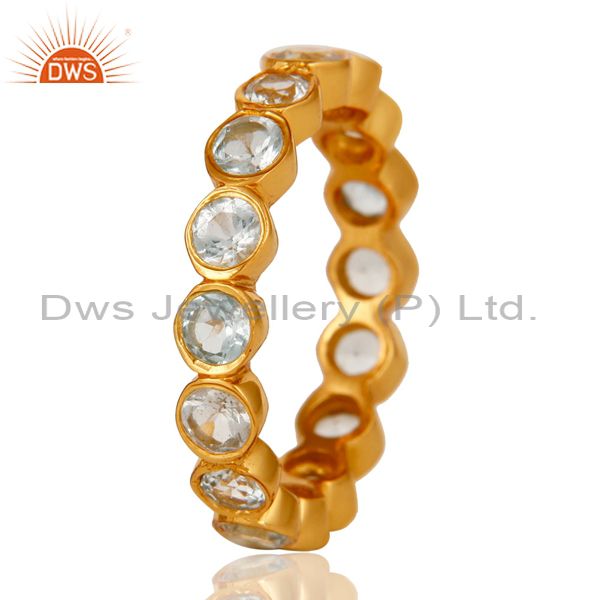 18K Gold Plated Sterling Silver Blue Topaz Ring Gemstone Band