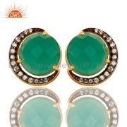 18K Gold Plated Sterling Silver Faceted Green Onyx And Cz Stack Ring