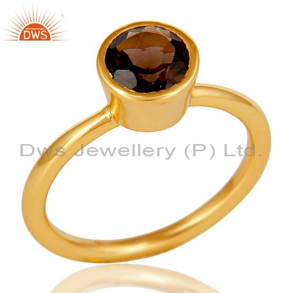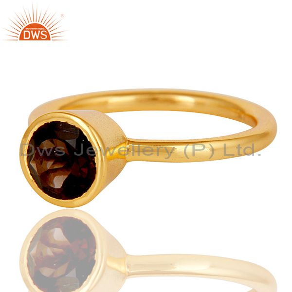 18K Gold Plated Sterling Silver Handmade Round Cut Smokey Topaz Stackable Ring