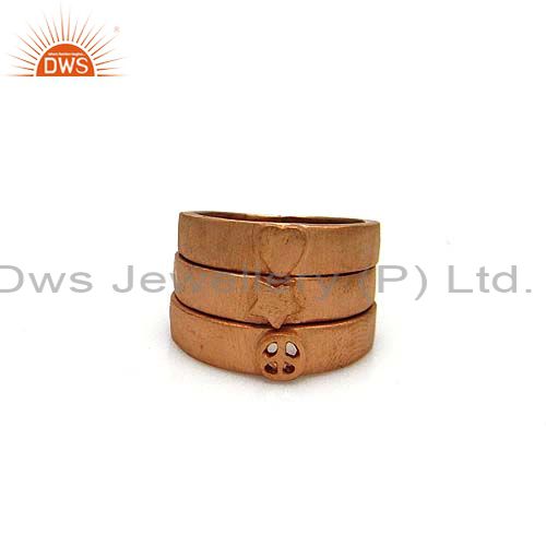 18K Gold Plated Sterling Silver Heart, Star And Peace Sign Triple Stack Ring