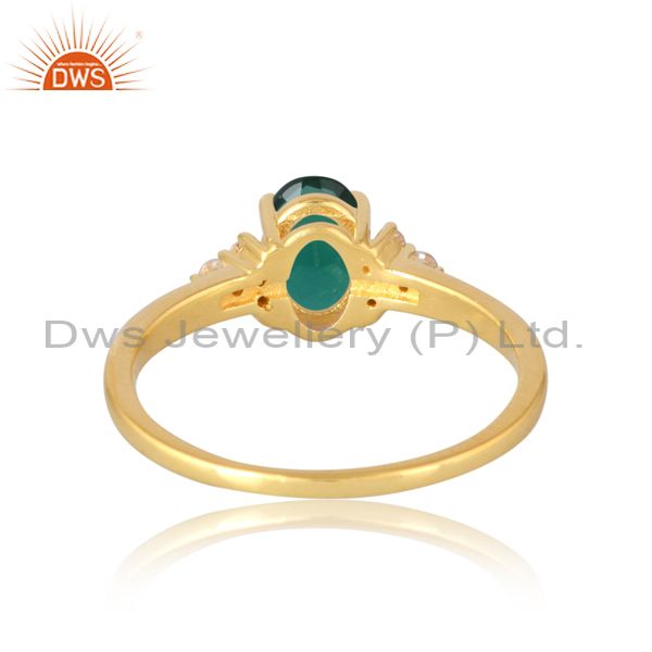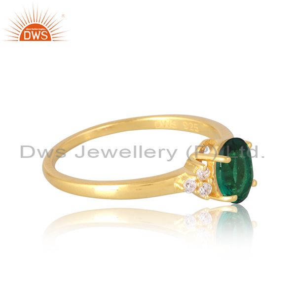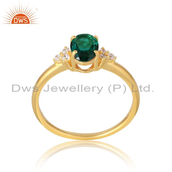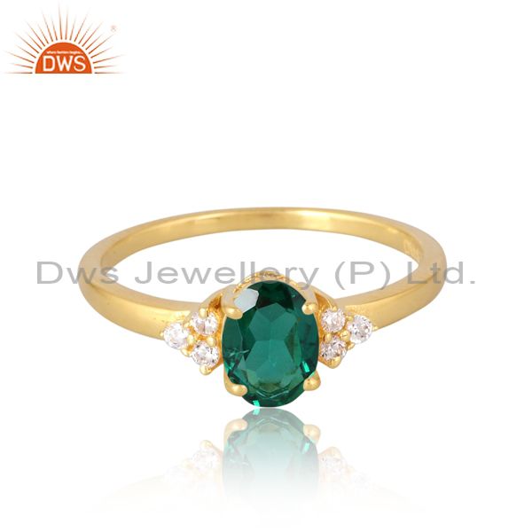 18K Gold Plated Sterling Silver Lab-Created Emerald Cz Ring