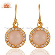 18K Gold Plated Sterling Silver Rose Chalcedony And White Topaz Cocktail Ring