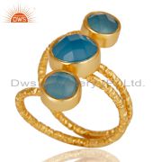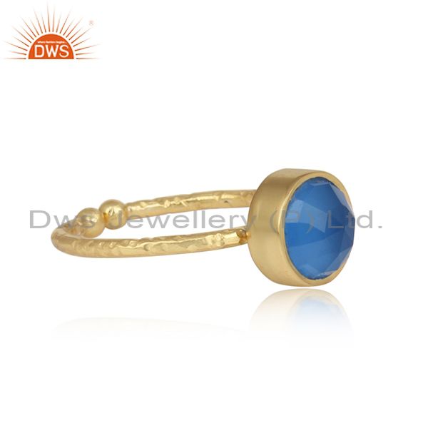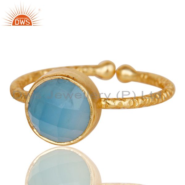 18K Gold Plated Sterling Silver Stackable Ring With Chalcedony